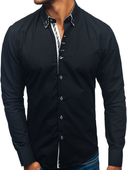 Чорна чоловіча сорочка з довгим рукавом Bolf 3762
