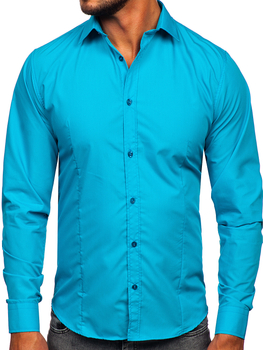 Світло-бірюзова елегантна чоловіча сорочка з довгим рукавом Bolf 1703