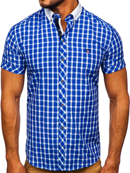 Блакитна чоловіча сорочка з довгим рукавом в клітку Bolf 22749