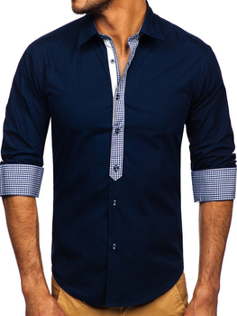 Чоловіча елегантна сорочка з довгим рукавом темно-синя Bolf 6882