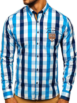 Чоловіча сорочка в клітину з довгим рукавом блакитна Bolf 1766-1