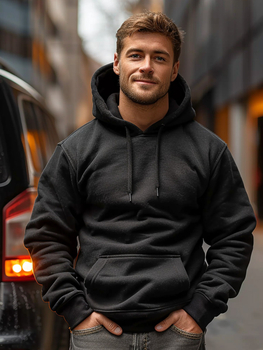 Чорна чоловіча толстовка з капюшоном кенгуру Bolf 2009A1