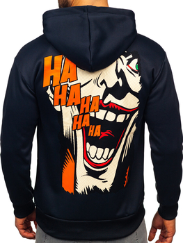 Темно-синій чоловічий худі кенгуру з принтом Bolf M286