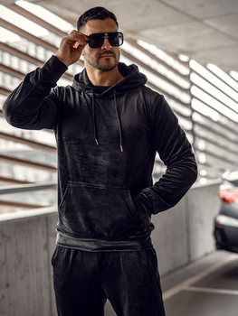 Чорний велюровий чоловічий спортивний костюм з капюшоном Bolf 8C1171A