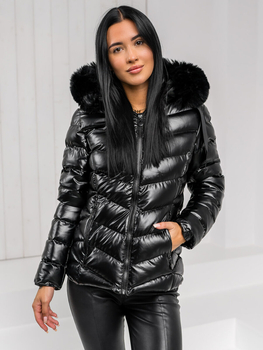 Чорна стьобана жіноча демісезонна куртка з капюшоном Bolf 5M3138