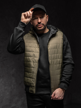 Зелений стьобаний чоловічий жилет з капюшоном Bolf 13079