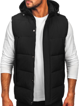 Чорний стьобаний чоловічий жилет з капюшоном Bolf 13072