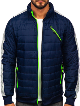 Темно-синя чоловіча стьобана демісезонна куртка-бомбер Bolf 146307