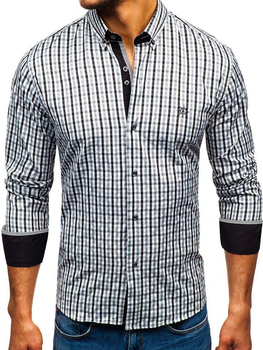 Чоловіча сорочка віші в клітку з довгим рукавом бирюзова Bolf 4712