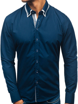 Чоловіча сорочка з довгим рукавом темно-синя Bolf 1758