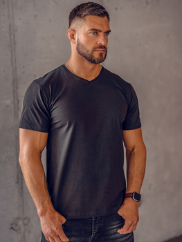 Футболка чоловіча без принта в v-подібним вирізом антрацитова Bolf 192131